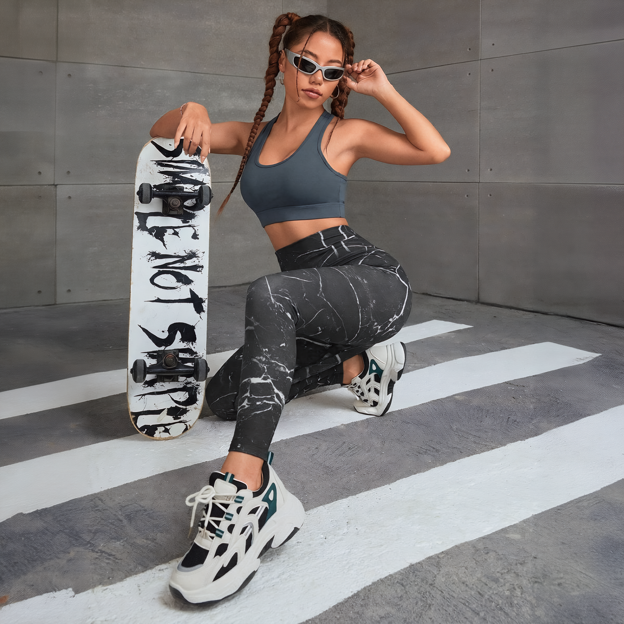 Features creative multi-pattern designs, making each pair of leggings unique and stylish, perfect with high-waisted leggings or shorts.
